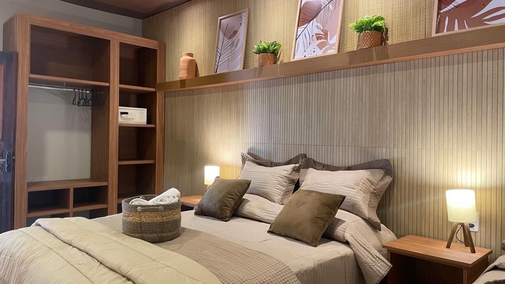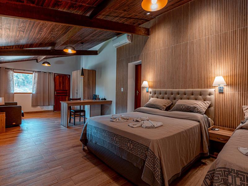 O Hotel Fazenda Santa Bárbara possui 72 apartamentos, sendo 66 na sede divididos em andar térreo, 2º andar (um lance de escadas) e 3º andar (dois lances de escadas) e 6 apartamentos na Ala Casarão (cerca de 100 mts da sede). São divididos nas categorias: Standard, Térreo, Térreo com Ar, Frente Mata, Superior Lago, Conjugado, Suíte com ar e Ala Casarão.